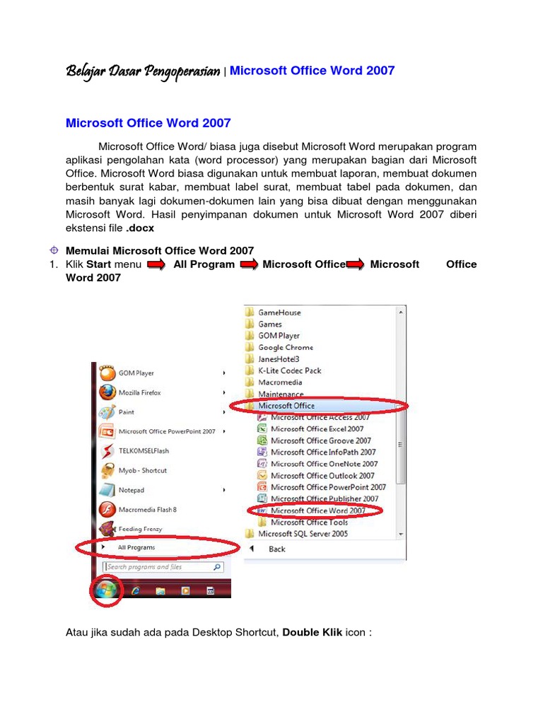 Belajar Dasar Pengoperasian Microsoft Office Word 2007